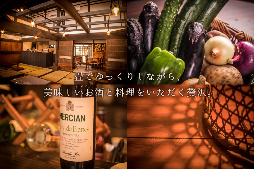畳でゆっくりしながら、美味しいお酒を料理をいただく贅沢。